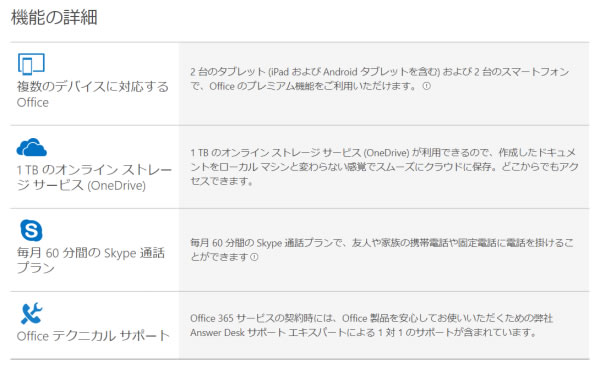 Office 365サービスに加入すると使える機能(マイクロソフトページより)