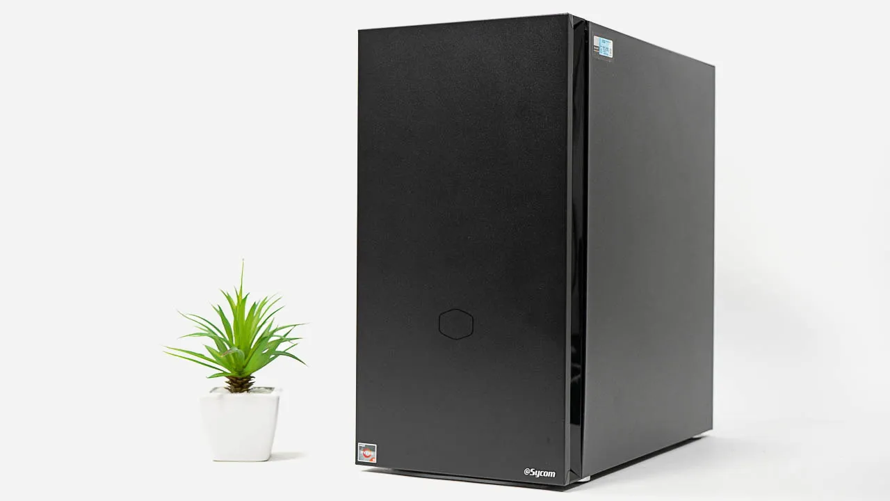 シンプルなデザインのフロントパネルには、USB、USB-C、SDカードリーダーを備え、機能的です。側面はブラックで、無難なデザインだと思います。