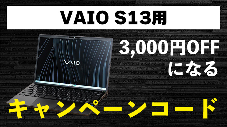 the比較限定で、VAIO S13が3,000円OFFで購入できるキャンペーンコードを、メーカーからいただきました。ご購入の際はご活用下さい。